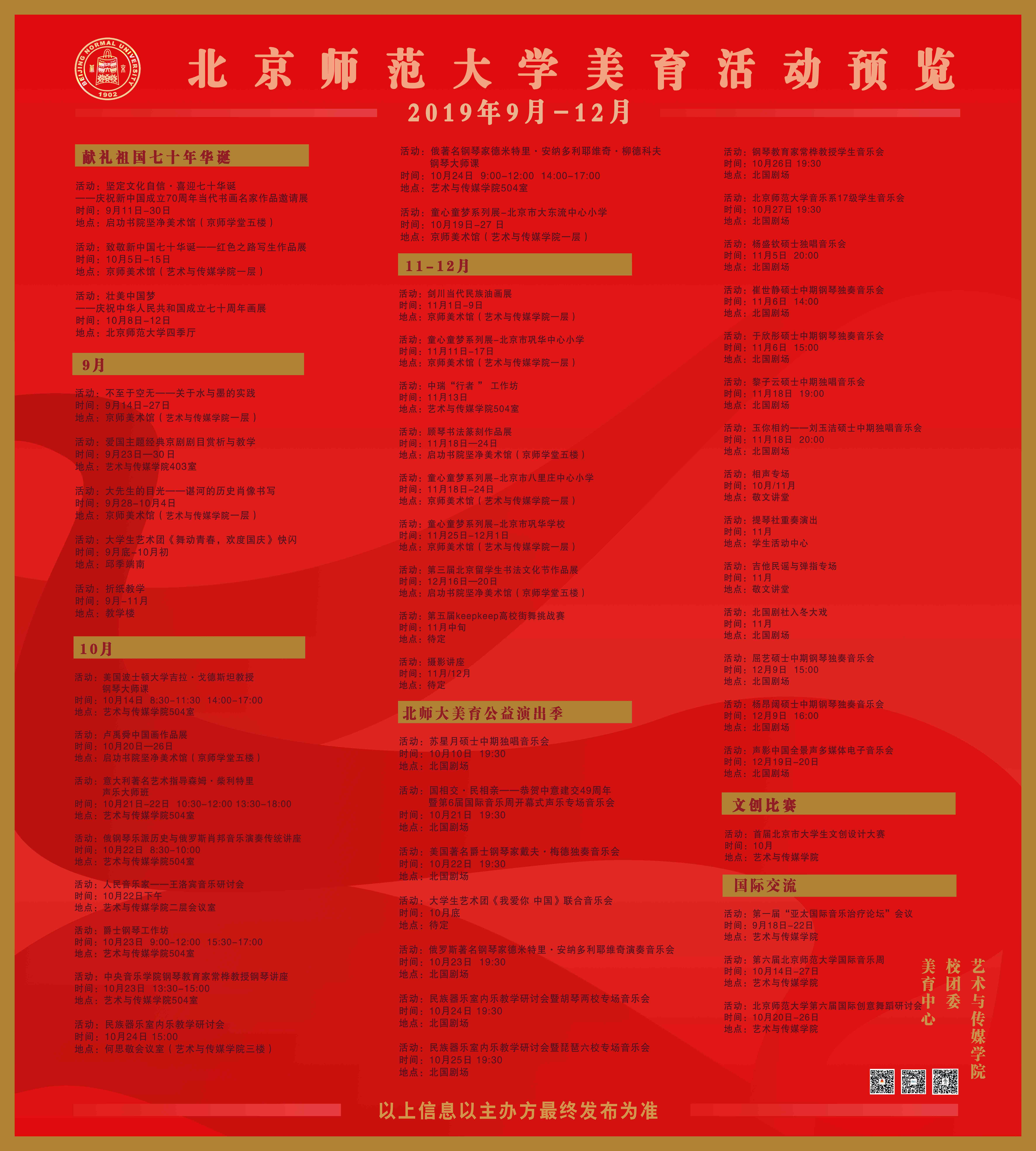 • 贺华诞,美育师大来献礼!我校2019年9-12美育活动一览