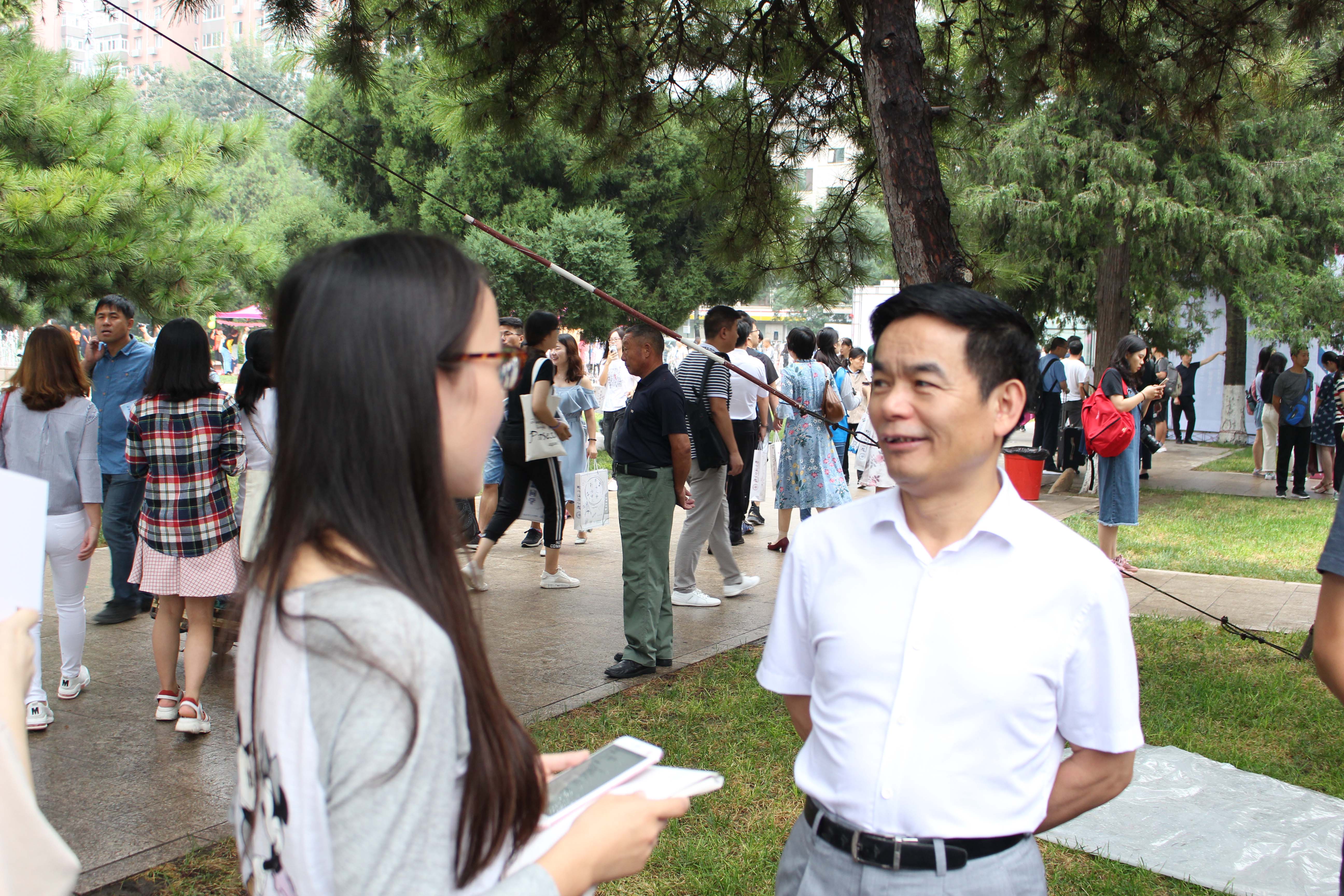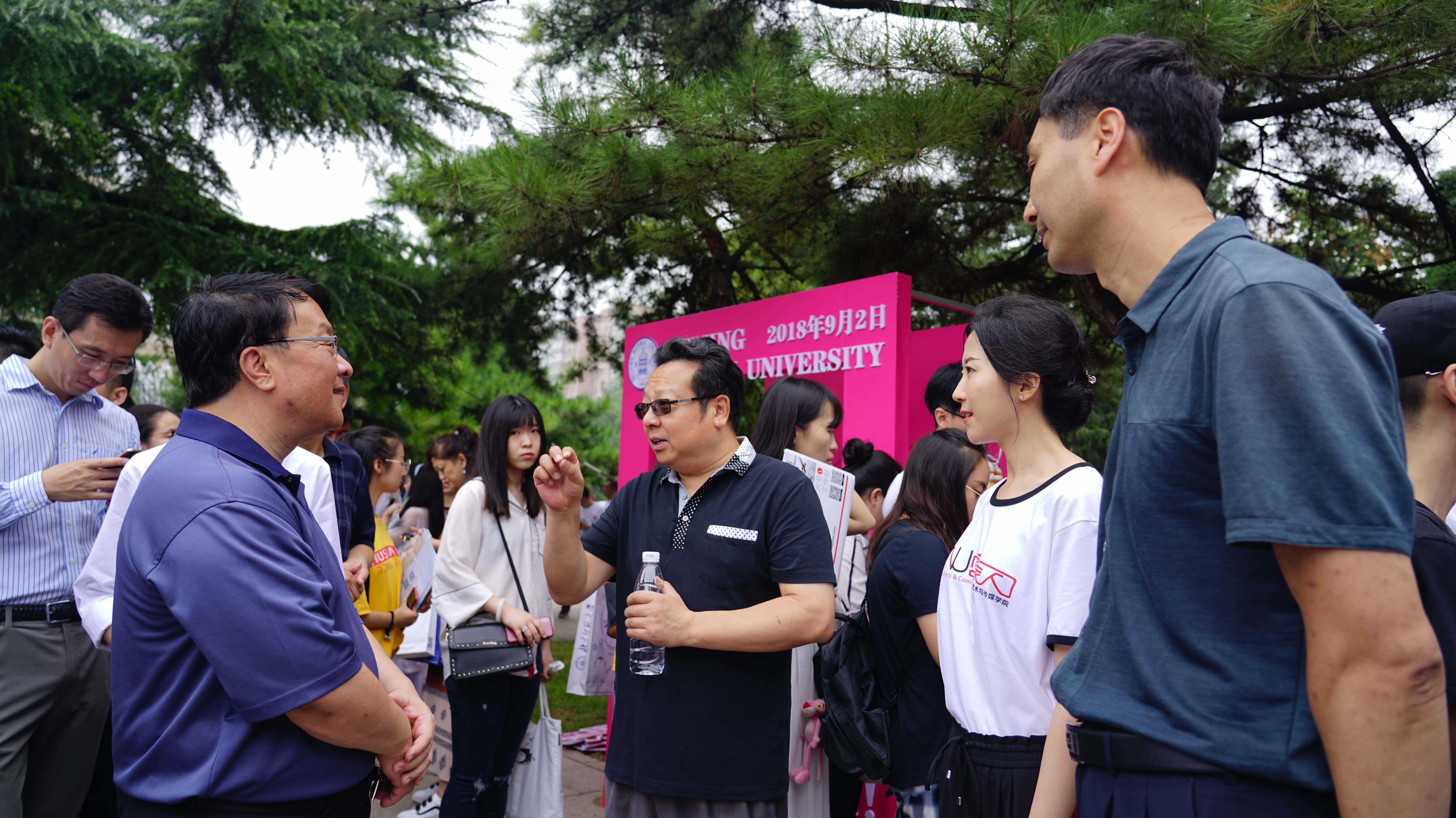 随着迎新工作如火如荼地展开,上午,我校党委书记程建平,校长、党委副书记董奇老师,党委副书记李晓兵老师与相关部处负责同志先后来到京师广场迎新现场看望全校各院系新生,慰问各院系工作人员。我院院长胡智锋老师等迎新工作服务师生接受慰问指导。