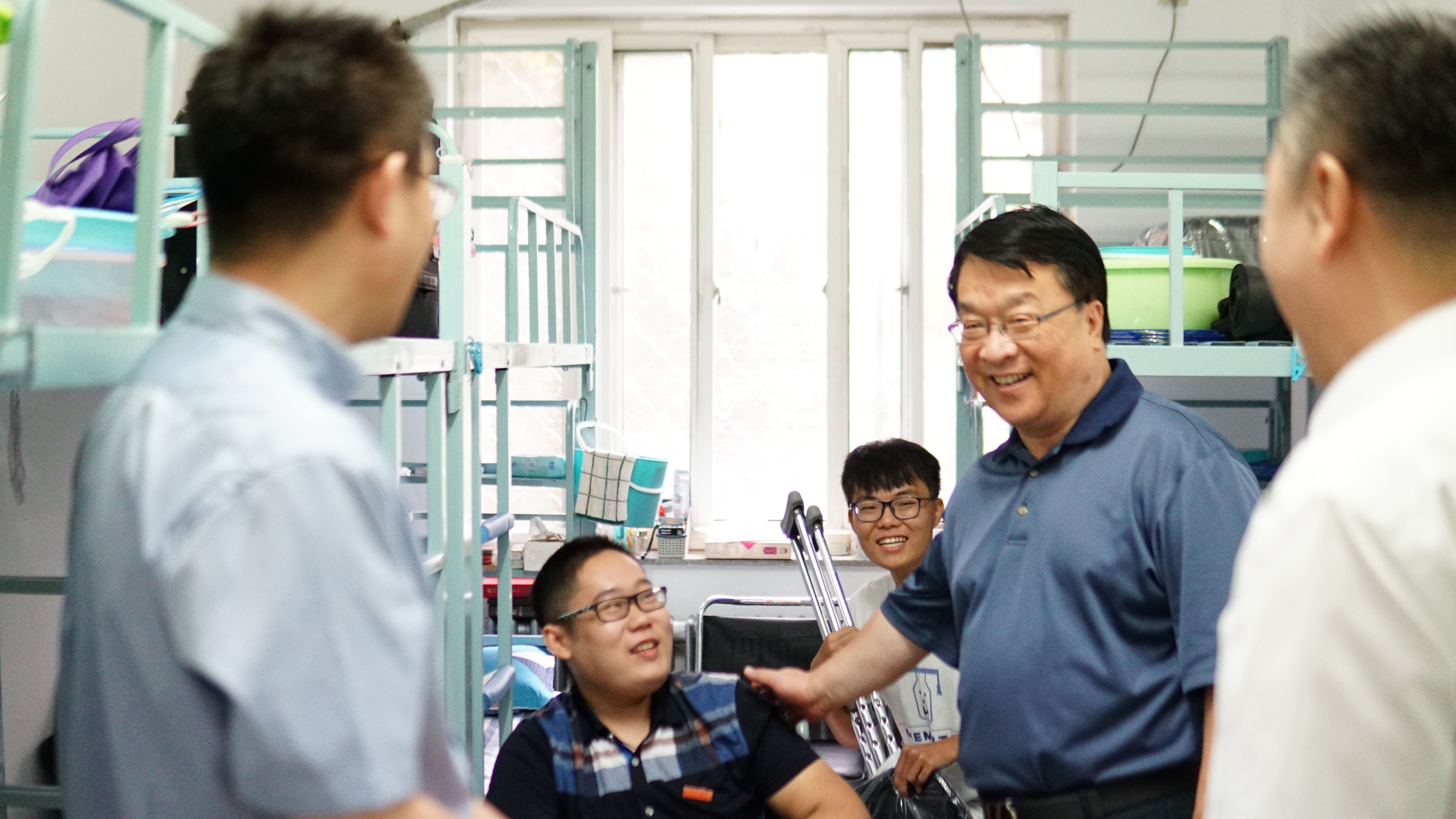 我校党委书记程建平,党委副书记李晓兵老师与相关部处负责同志还专门带着慰问品前往学生宿舍楼看望我院残疾硕士研究生新生严宇桥,一声声亲切的问候温情满满。