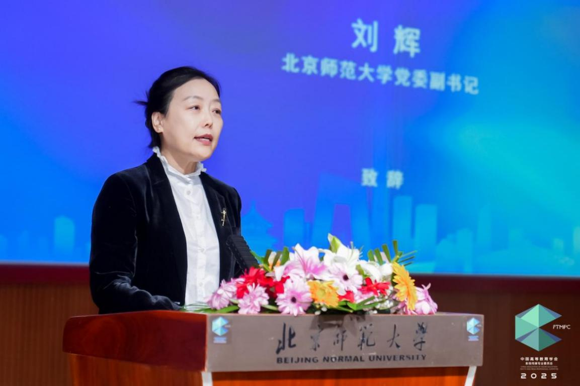 北京师范大学党委副书记刘辉代表北京师范大学进行致辞。她指出,北京师范大学始终以“服务国家战略、引领学术创新、强化组织凝聚力”为时代使命,深度参与、支持影视传媒专业委员会的建设与发展,而北京师范大学艺术与传媒学院的戏剧与影视学科,作为国家重点建设学科,是学校“双一流”建设布局中的重要支柱。面对数智时代,北京师范大学正积极推动艺术、技术与人文的深度交叉,其中由黄会林教授发起的“看中国·外国青年影像计划”便是这一育人理念的成功实践。她继续表示,北京师范大学将以此次年会为契机,继续深化与各方的合作,共同探索影视传媒创新发展的新路径,为建设教育强国与文化强国贡献智慧与力量。