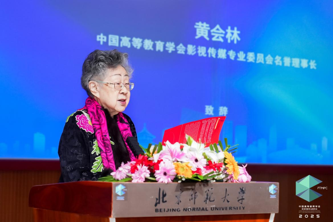中国高等教育学会影视传媒专业委员会名誉理事长、北京师范大学资深教授黄会林先生致辞