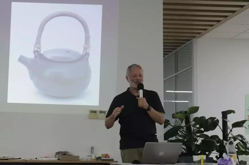陶艺家瑞克·海因茨讲解西方制陶工艺,通过陶器的展示与解读,表明工艺美术是将想法与现实相碰撞,通过物质的转化而形成某种鲜明的、无法言喻的复杂表达,形成一种美学意义上的产物。